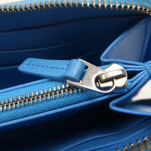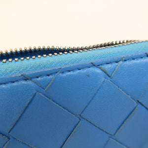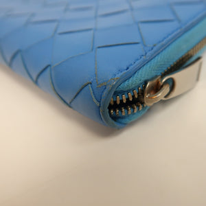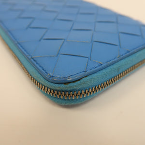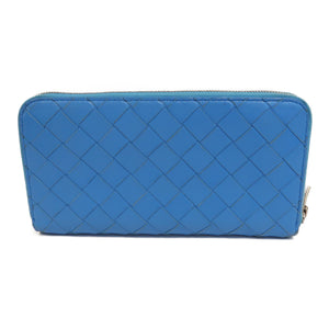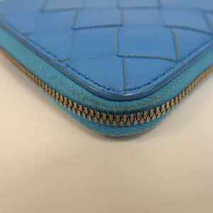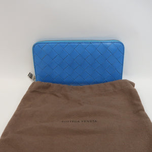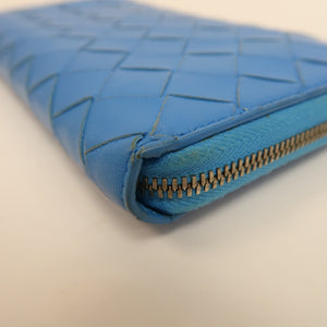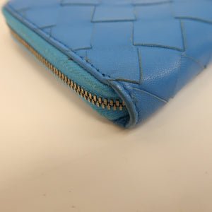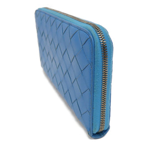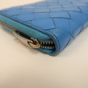 BOTTEGA VENETA BV SHW Long Wallet Intrecciato Calfskin Leather Blue