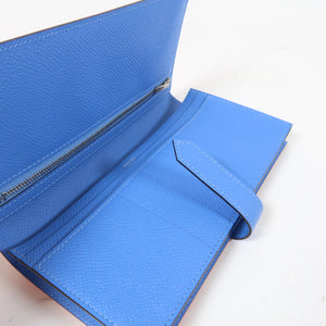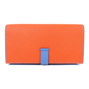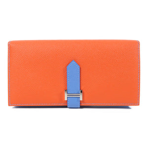 HERMES PHW Bearn Wallet Epsom Leather Orange Poppy/Bleu Paradis