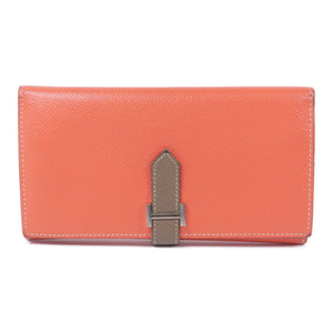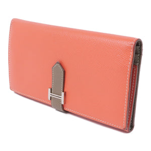 HERMES PHW Bearn Tri-fold Long Wallet Epsom Leather Q5 Rouge Casaque