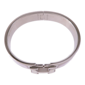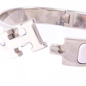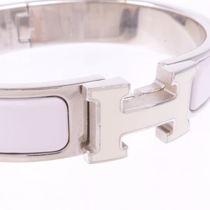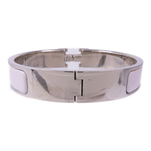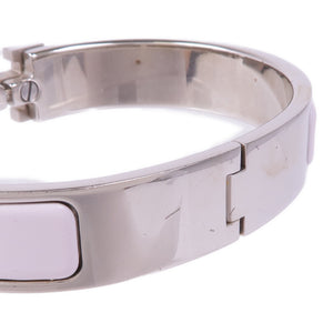 HERMES Clic H Bracelet Metal Enamel Silver Pink White