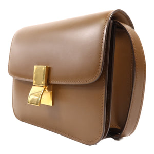 CELINE GHW Mini Classic Box Shoulder Bag Calfskin Leather Brown