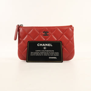 CHANEL CC SHW Coins Case Lambskin Leather Red