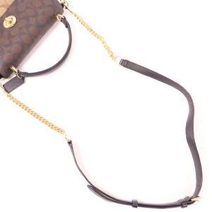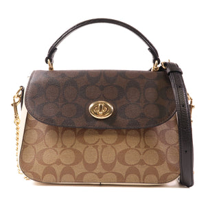 COACH GHW 2 Way Bag Coated Canvas Brown/White