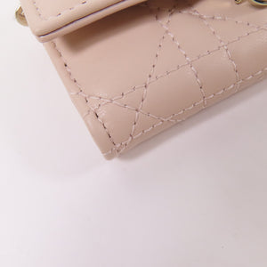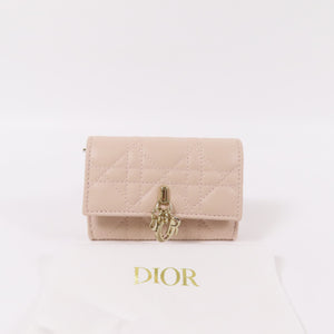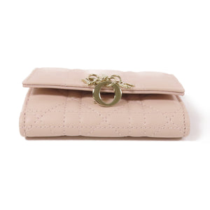 CHRISTIAN DIOR CD GHW Caro Dahlia Card Case Lambskin Leather Pink