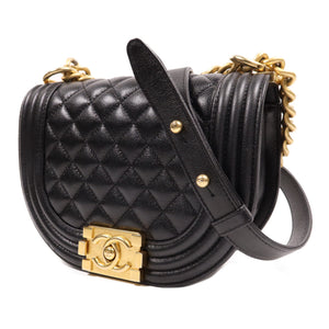 CHANEL CC GHW Boy Messenger Shoulder Bag Calfskin Leather Black