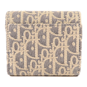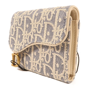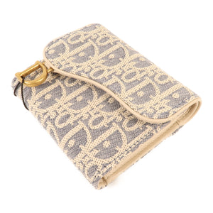 CHRISTIAN DIOR CD GHW Saddle Lotus Wallet Canvas Grey