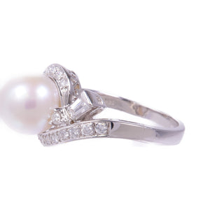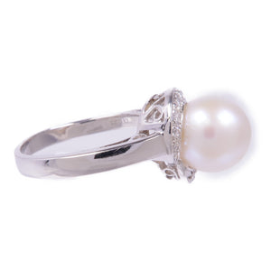 JEWELRY Pearl Diamond Ring 18K White Gold US#6