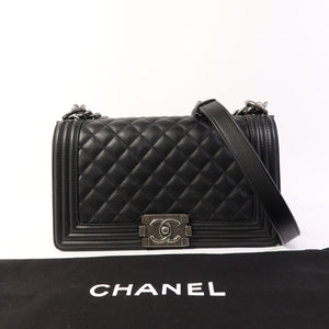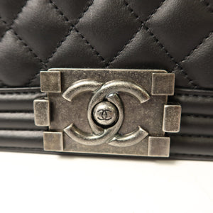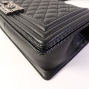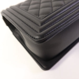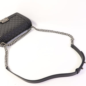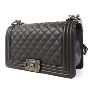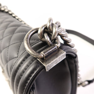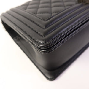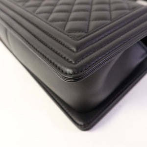 CHANEL CC Boy 25 Chain Shoulder Bag Calfskin Leather Black