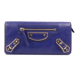BALENCIAGA GHW Long Wallet 163471.4310 Calfskin Leather Blue