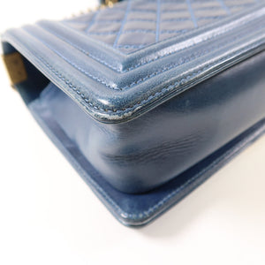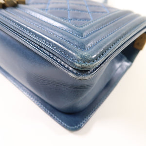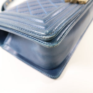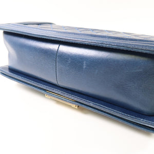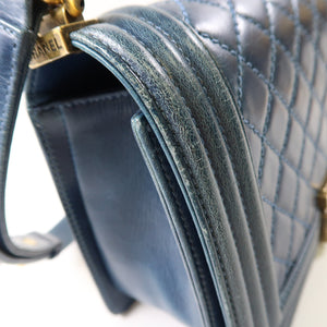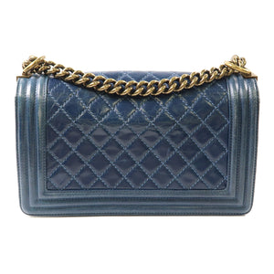 CHANEL CC GHW Boy 25 Chain Shoulder Bag Lambskin Leather Blue