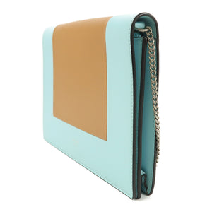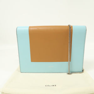 CELINE SHW Chain Shoulder Bag Lambskin Leather Blue/Brown