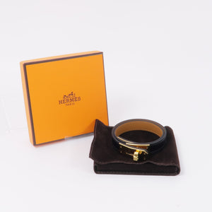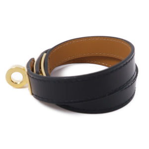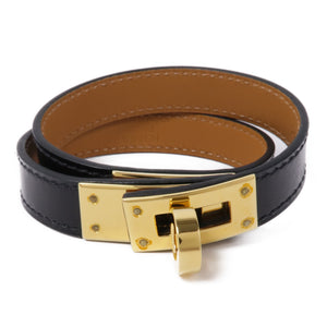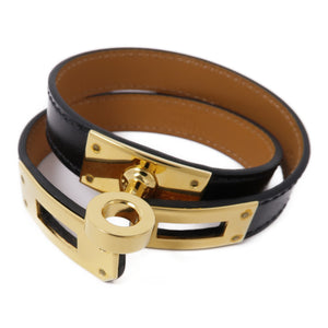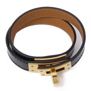HERMES GHW Kelly Double Tour Bracelet Leather Noir Black