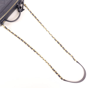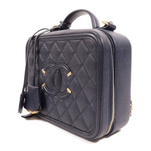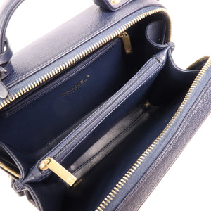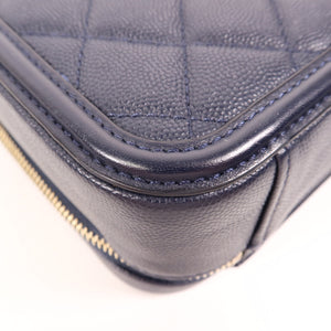CHANEL CC GHW Vanity Case 2 Way Shoulder Handbag A93343 Calfskin Leather Navy