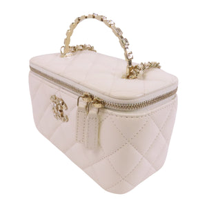 CHANEL CC GHW Vanity Case Hand Shoulder Bag AP3799 Lambskin Leather white