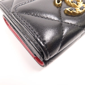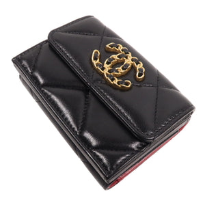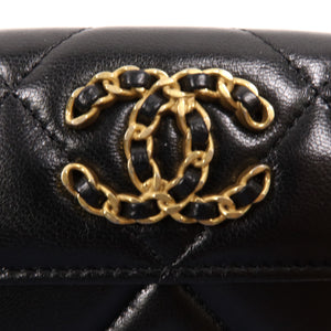 CHANEL CC GHW C19 Wallet AP1789B Lambskin Leather Black