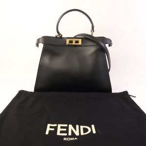 FENDI GHW Peekaboo I See U Medium 2 Way Bag 8BN321 Calfskin Leather Black