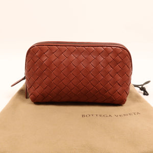BOTTEGA VENETA BV Cosmetic Bag Clutch Bag Lambskin Leather Red