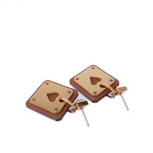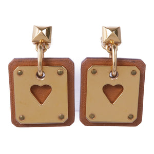 HERMES As de Coeur Earrings Veau Swift Leather Gold Plated