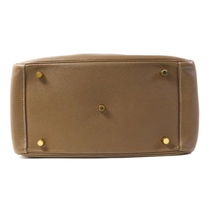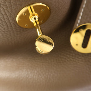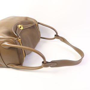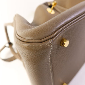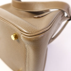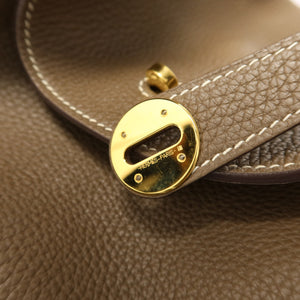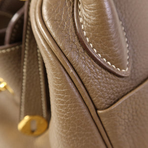 HERMES GHW Lindy 30 2 Way Shoulder Handbag Clemence Leather Etoupe