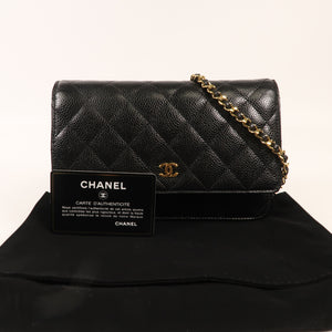 CHANEL CC GHW WOC Wallet On Chain Shoulder Bag A33814 Calfskin Leather Black