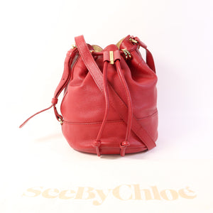 SEE BY CHLOE GHW Bucket Bag Shoulder Bag Calfskin Leather Red