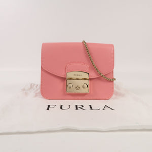 Furla GHW Chain Shoulder Bag Calfskin Leather Pink