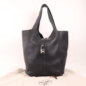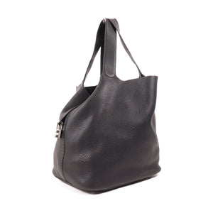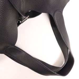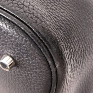 HERMES PHW Picotin TGM Handbag Clemence Leather Noir