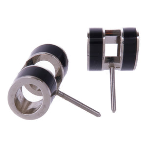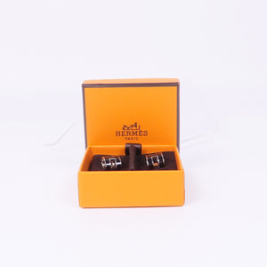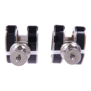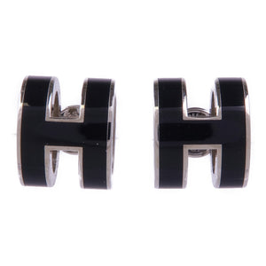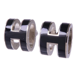 HERMES Pop H Earrings Metal Silver Noir