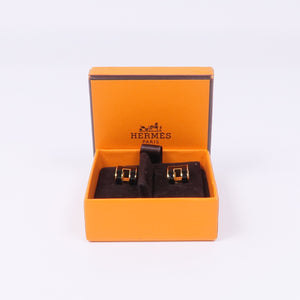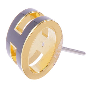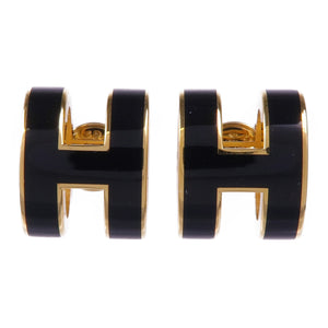 HERMES Pop H Earrings Metal Gold Noir