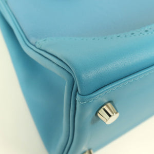 HERMES PHW Kelly Ghillies 32 2 Way Bag Togo Leather/Swift Leather Turquoise