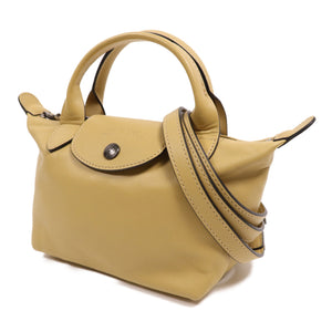 Longchamp 2Way Shoulder Bag Lambskin Leather Yellow