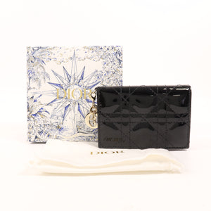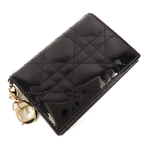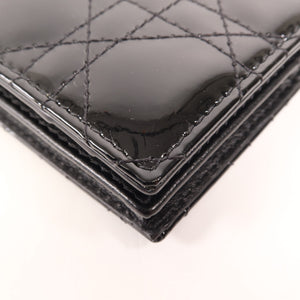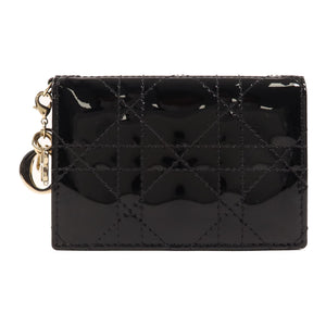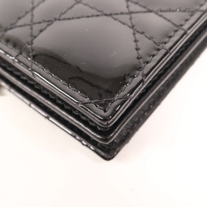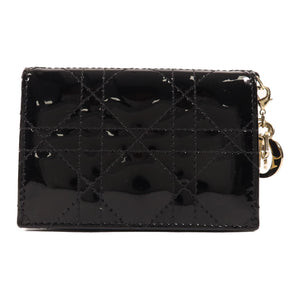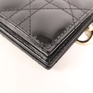 Christian Dior GHW Lady Dior Gardenia Wallet S0178OVRB Patent Leather Black