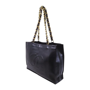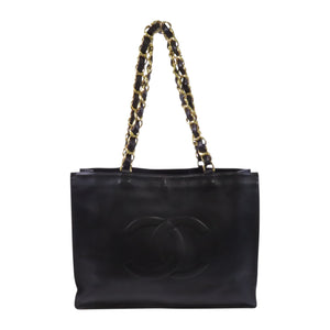 CHANEL CC GHW Shoulder Tote Bag Lambskin Leather Black