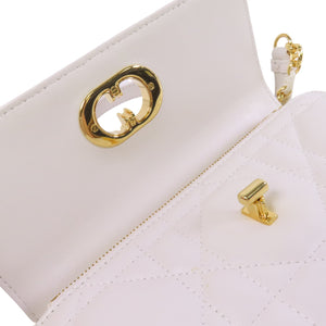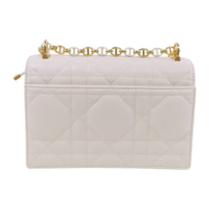 Christian Dior CD GHW Miss Caro Chain Shoulder Bag Lambskin Leather White