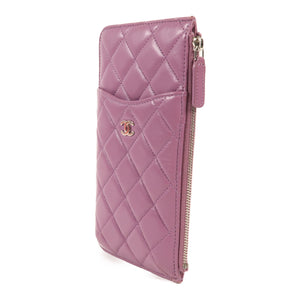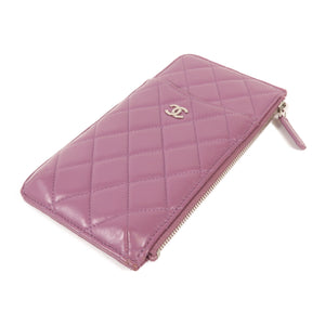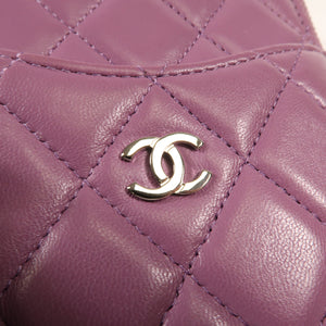 CHANEL CC SHW Clutch Bag Lambskin Leather Purple