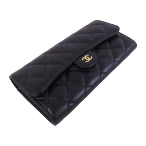 CHANEL CC GHW Long Wallet Calfskin Leather Black