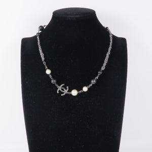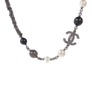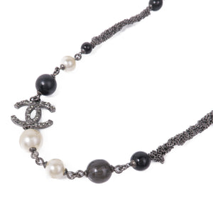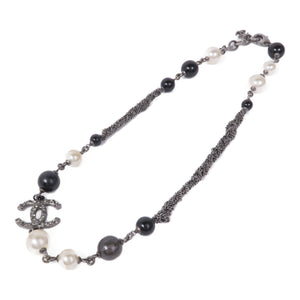 CHANEL CC Necklace Accessories Metal PVC Black White Silver