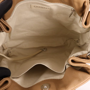 CHANEL CC SHW Timeless Pleated Chain Tote Bag Calfskin Leather Brown