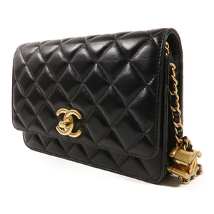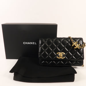 CHANEL CC GHW WOC Wallet On Chain Shoulder Bag AP3938 Lambskin Leather Black