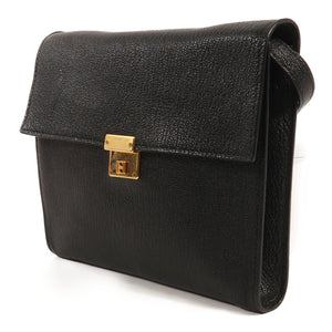 HERMES GHW Clic 16 Shoulder Bag Chevre Leather Noir