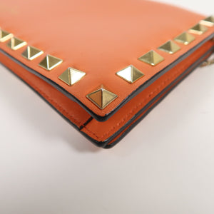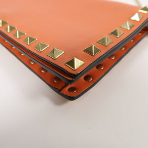 Valentino GHW Chain Shoulder Bag Calfskin Leather Orange Pink