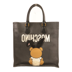 MOSCHINO GHW Tote Bag Handbag Calfskin Leather Black