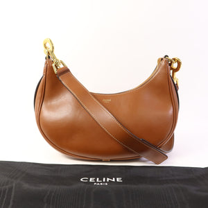 CELINE GHW Ava Medium Shoulder Bag 19692 Calfskin Leathe Brown