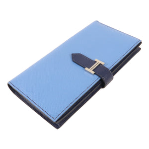 HERMES PHW Bearn W Snap Bifold Wallet Epsom Leather Bleu Azur Bleu Saphir
