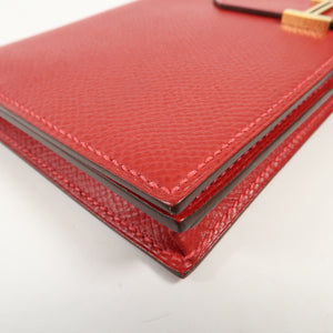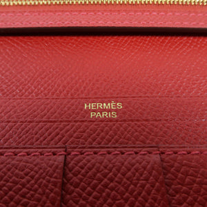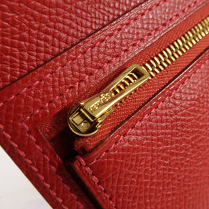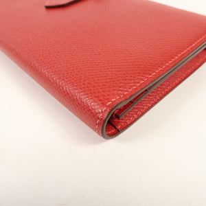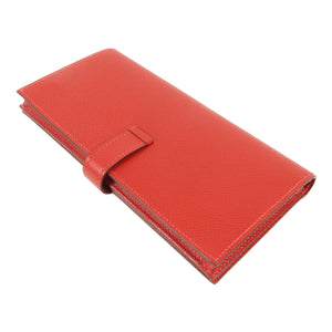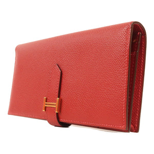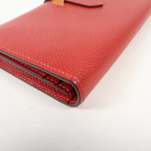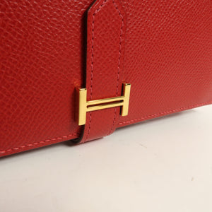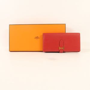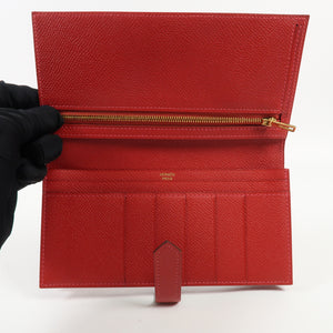 HERMES GHW Bearn W Snap Long Wallet Epsom Leather Rouge Casaque