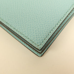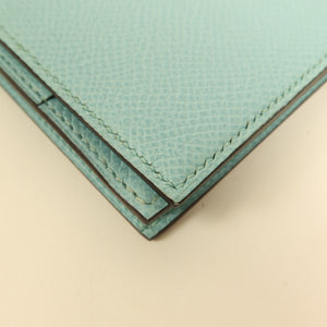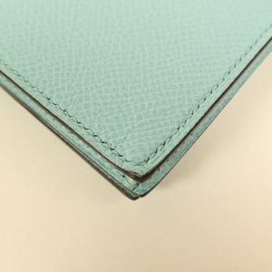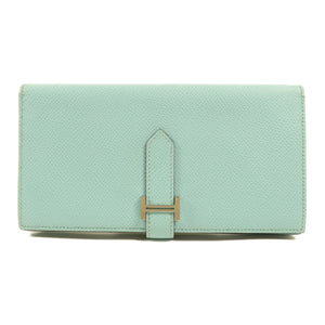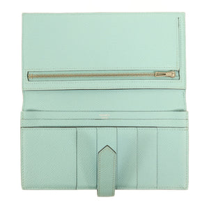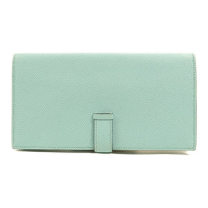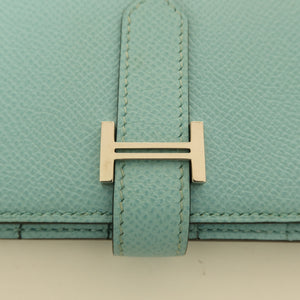 HERMES PHW Bearn W Snap Long Wallet Epsom Leather Bleu Atoll