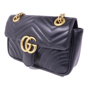GUCCI GG GHW GG Marmont Chain Shoulder Bag 446744 Calfskin Leather Black