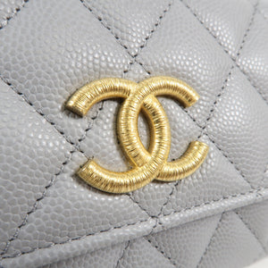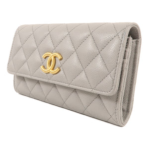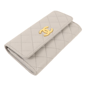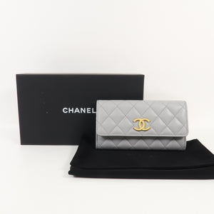 CHANEL CC GHW Wallet Calfskin Leather Grey