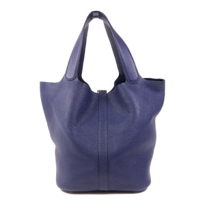 HERMES PHW Picotin GM Handbag Taurillon Clemence Leather Navy