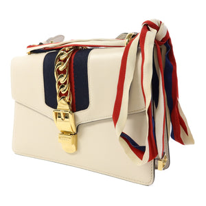 GUCCI GG GHW Sylvie Shoulder Bag 421882 Calfskin Leather Beige